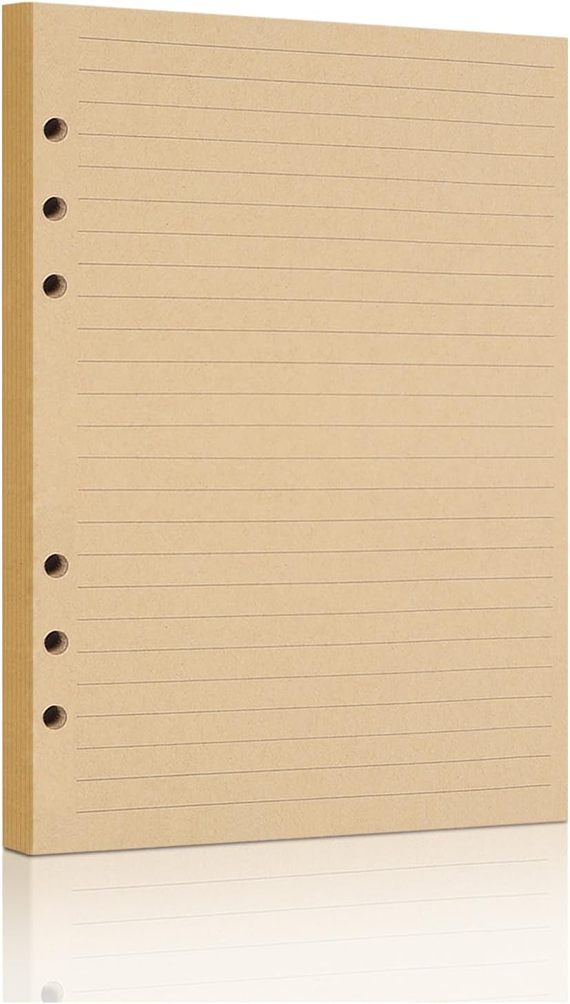 Retro kraft paper – A5 lined binder inserts, 80 sheets (160 pages), suitable for 6-hole binders, can be used as diaries, notebooks, etc.