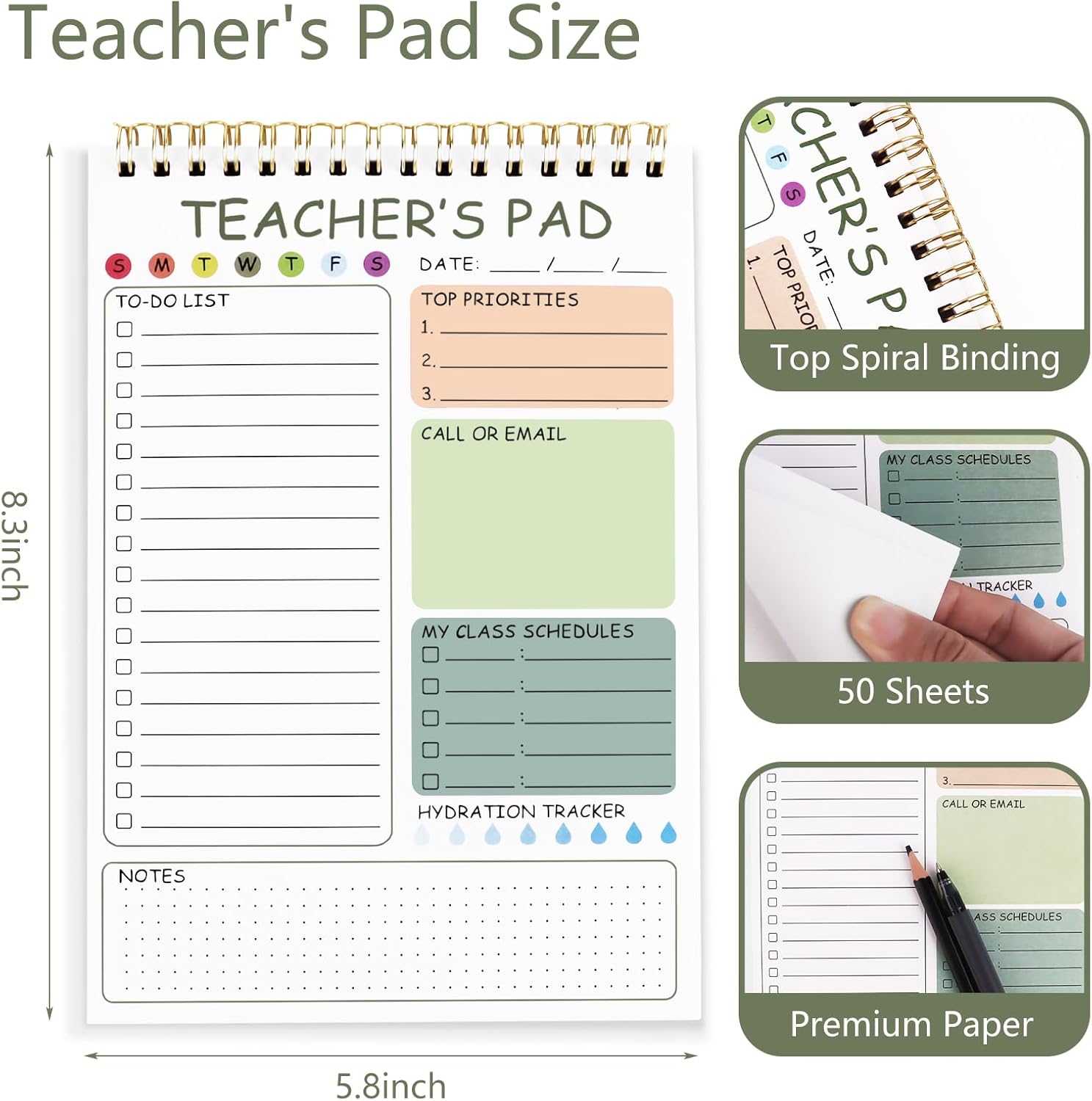 - The to-do list notepad is bound in spirals for easy removal of used pages without compromising its appearance. It contains 50 pages and it is a suitable office supply, which is more than enough to meet a teacher’s daily needs.